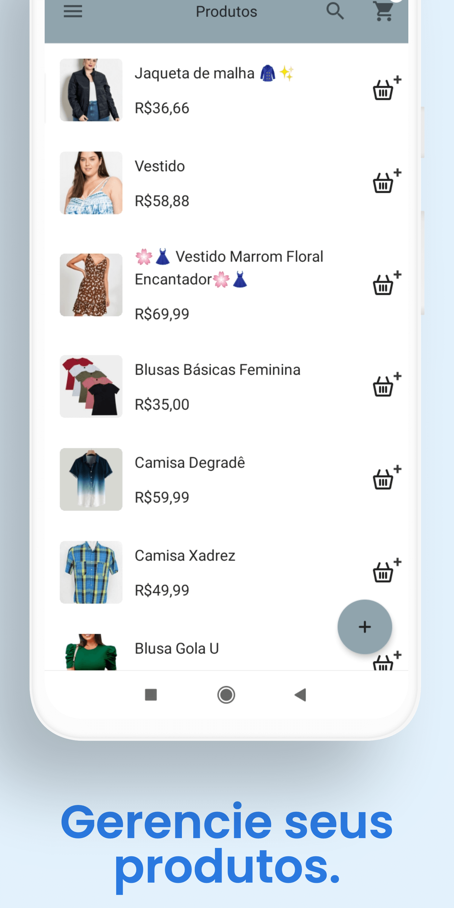 Cadastre produtos com preço, promoção, descrição e categoria. Adicione também as fotos do seu produto.