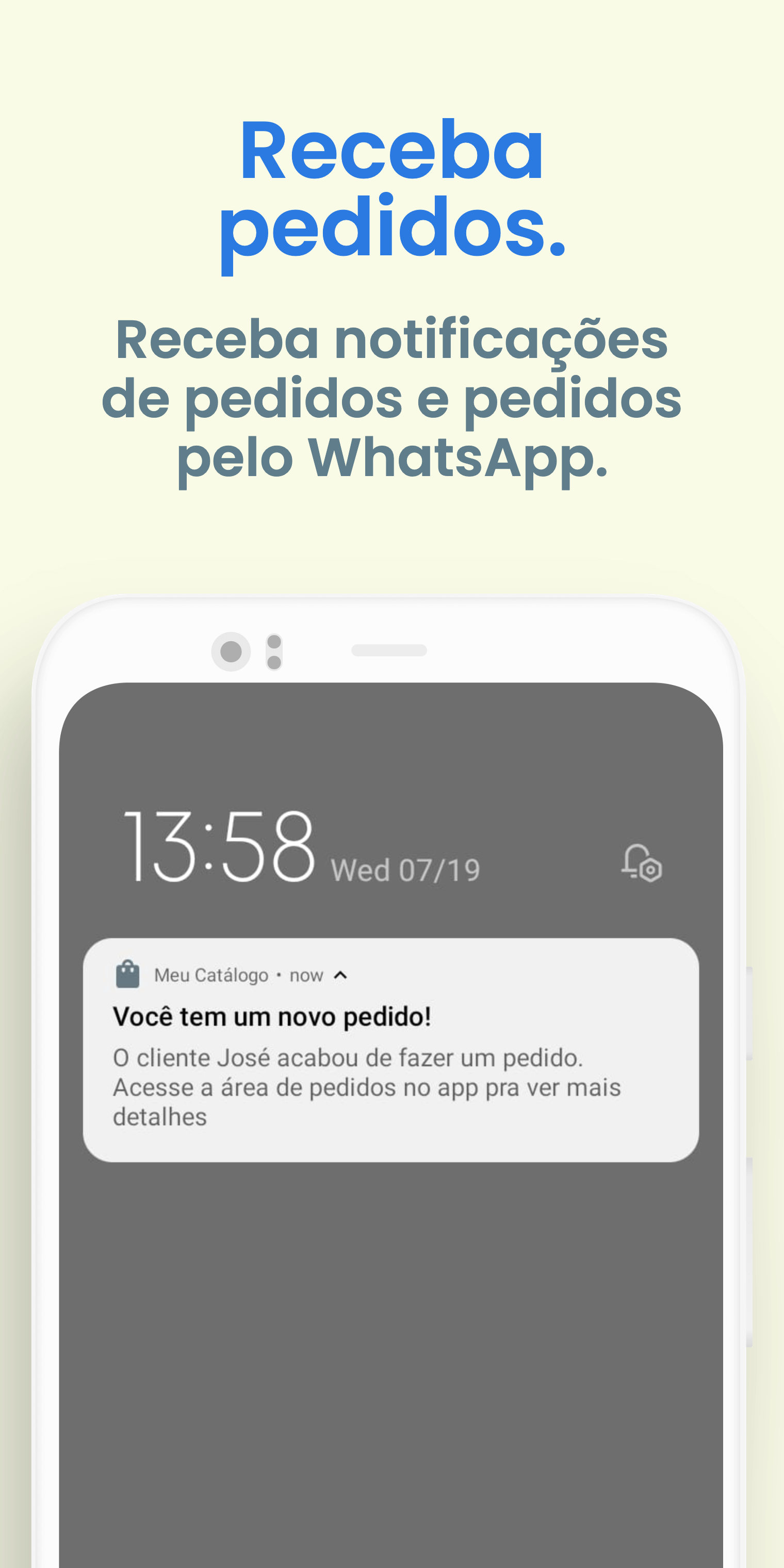 Receba e crie pedidos pelo whatsapp ou direto no app. Controle sua vendas adicionando status nos pedidos.