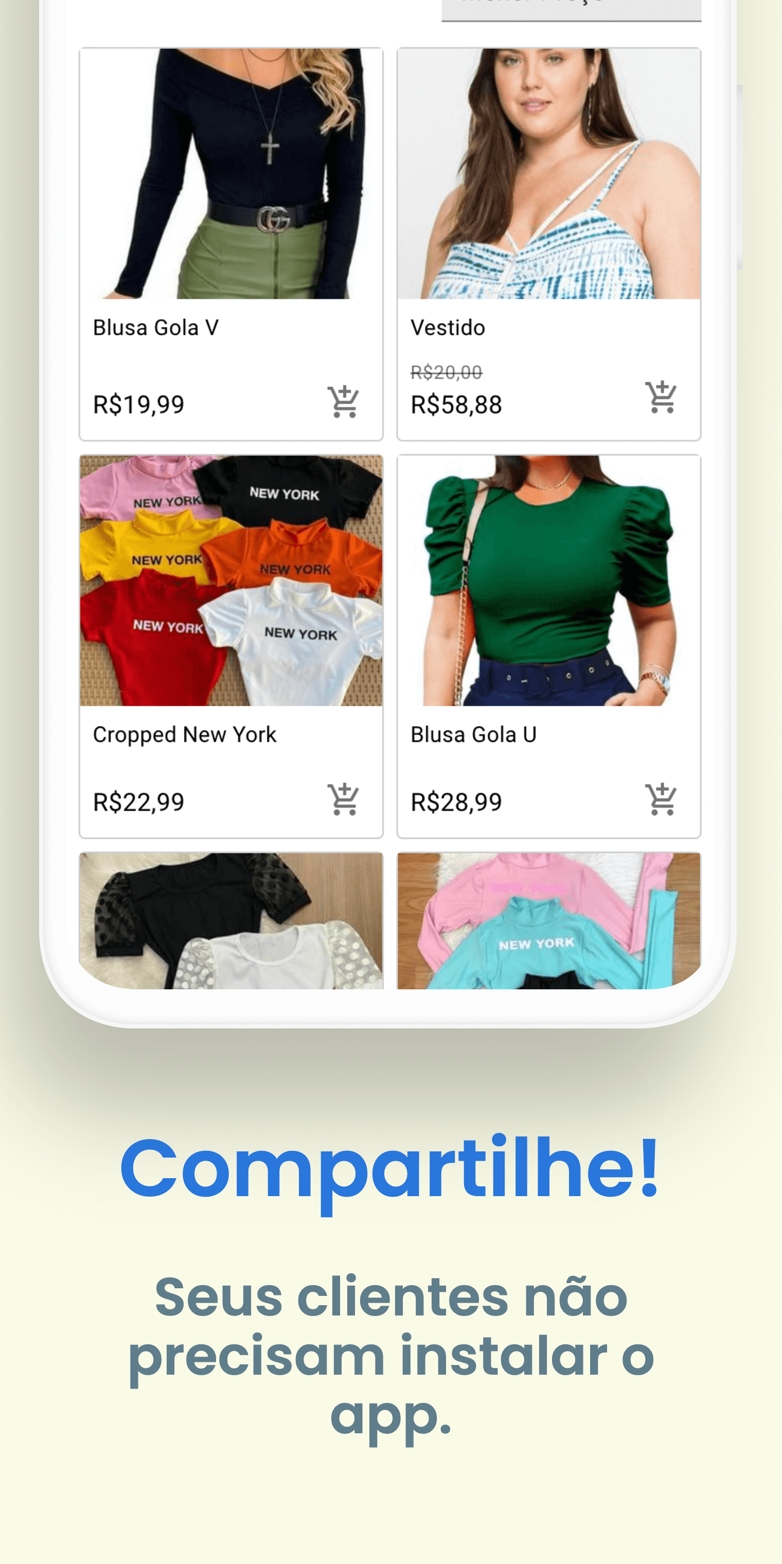 Feito para todo tipo de negócio. É fácil criar uma loja online e compartilhar com os seus clientes em minutos.